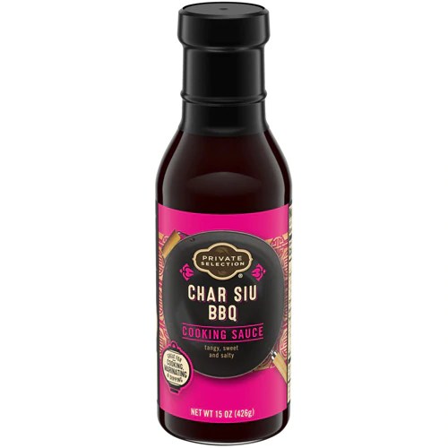 • Private selection® Char siu BBQ sauce: You will easily find it in any Kroger’s stores. To me, it’s like a mix of Japanese and Chinese char siu style. It has the five-spice seasoning, HOISIN sauce, but it also has mirin. The meat after cooking has a brown color on the outside (looks like Japanese char siu) and the taste is 60% close to the Chinese char siu. So, to fix it, I add some soy sauce, HOISIN sauce and honey, with 3 drops of red food coloring to adjust the taste and the color. Overall, this product is not bad, we still can buy it and we know how to fix it!