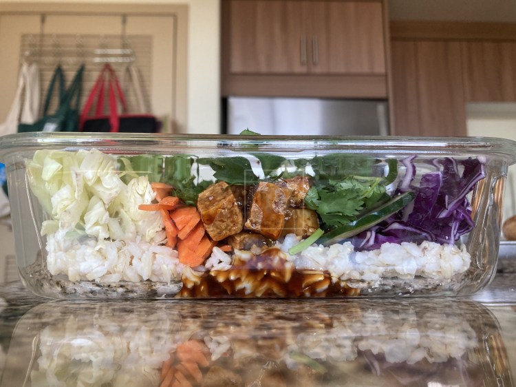 Ảnh ở giữa: Một phần pokeb bowl đậu hũ hoàn chỉnh.