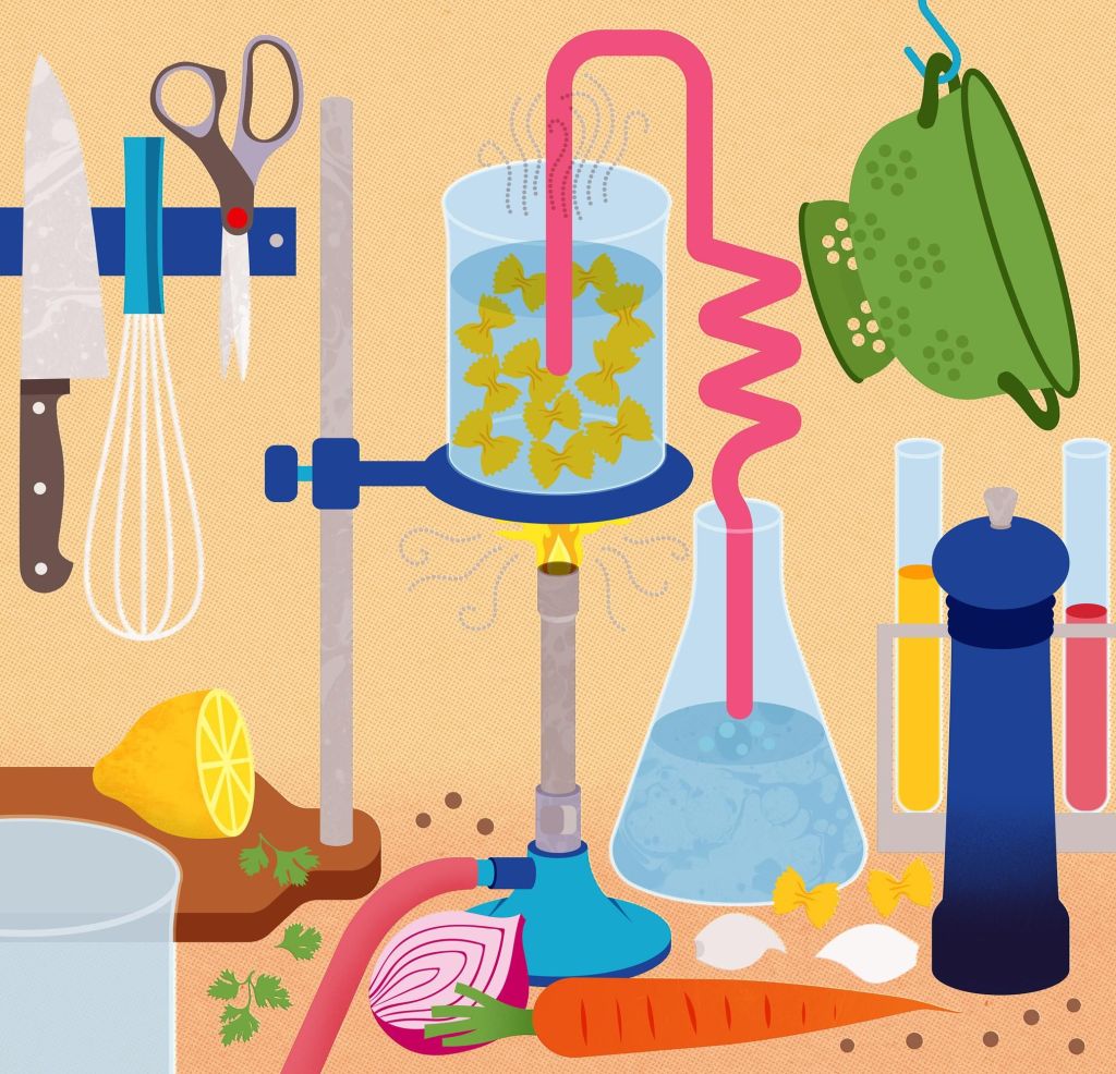 First of all, I can view my cooking process for a specific recipe as an chemistry experiment where I can adjust added the “ingredients/chemicals”, adjust the “cooking temperature” and time to achieve the desired products. Secondly, talking about appliances, both labs and kitchens have measuring tools, thermometer, balance, cooktop/hot plate and ovens/furnaces. At some point, cookbook and published recipes sound like textbooks and scientific articles. From that point of view, a kitchen is technically a culinary laboratory and a chef is a scientist!