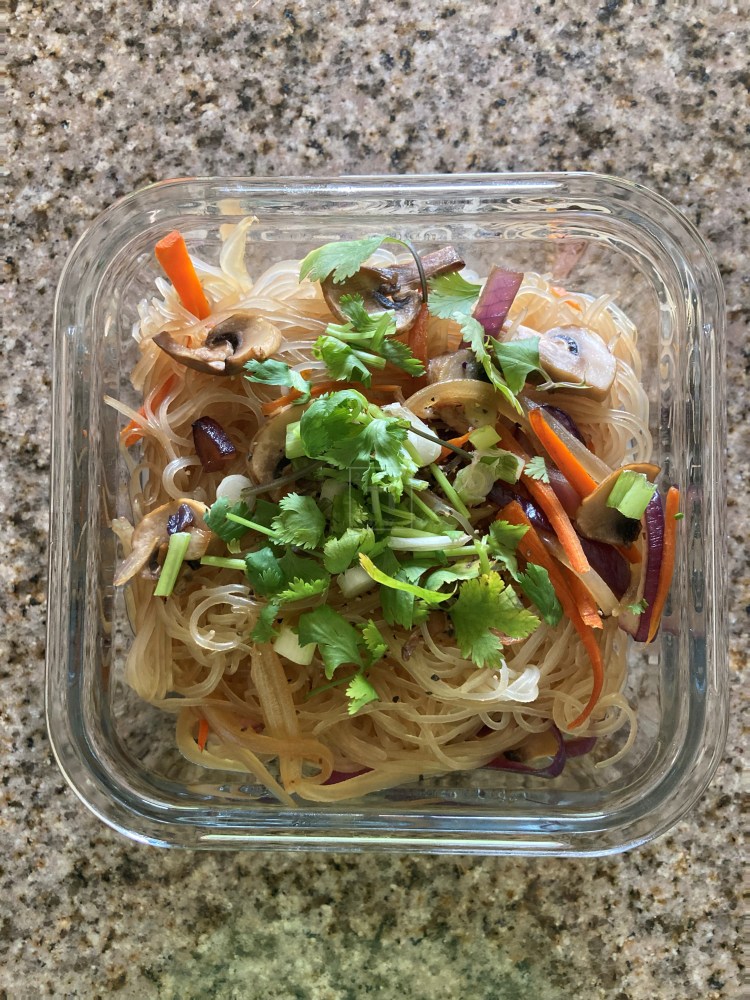 Mình thử món này bởi vì mình mua lộn sợi bún gạo thay vì sợi miến đậu xanh. Mình là mình muốn mua sợi miến đậu xanh (để nấu miến gà, miến xào cua hoặc xào nấm hay độn vào phần nhân chả giò…) nhưng mà nhãn bao bì làm mình lộn. Dù vậy nhưng mà mình cũng không bỏ phí gì hết, có bún gạo thì mình làm bún gạo xào chay, vừa dễ vừa ngon lại còn dễ ghiền nữa nha.