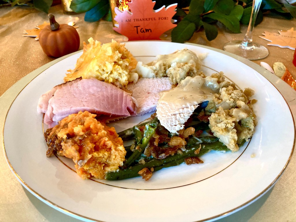 And the food? Absolutely amazing! The sister-in-law’s parents brought 02 versions of turkey: traditional turkey and smoked turkey. They also brought “spicy” corn bread casserole and sweet potato casserole. The corn bread casserole was delicious with a kick of heat from jalapeno that made my boyfriend drank a lot of water after trying it. And my first time trying turkey, it was a bit dry and that was why it tasted much better when we added stuffing and gravy sauces on it. I prefer the smoked turkey to the traditional one, as smoked turkey was still moist. And the dates, the ham, the casseroles… all of them contributed to my memorable 2022 Thanksgiving. Yup, it was yummy, to the point for a happy dance after every bite!
