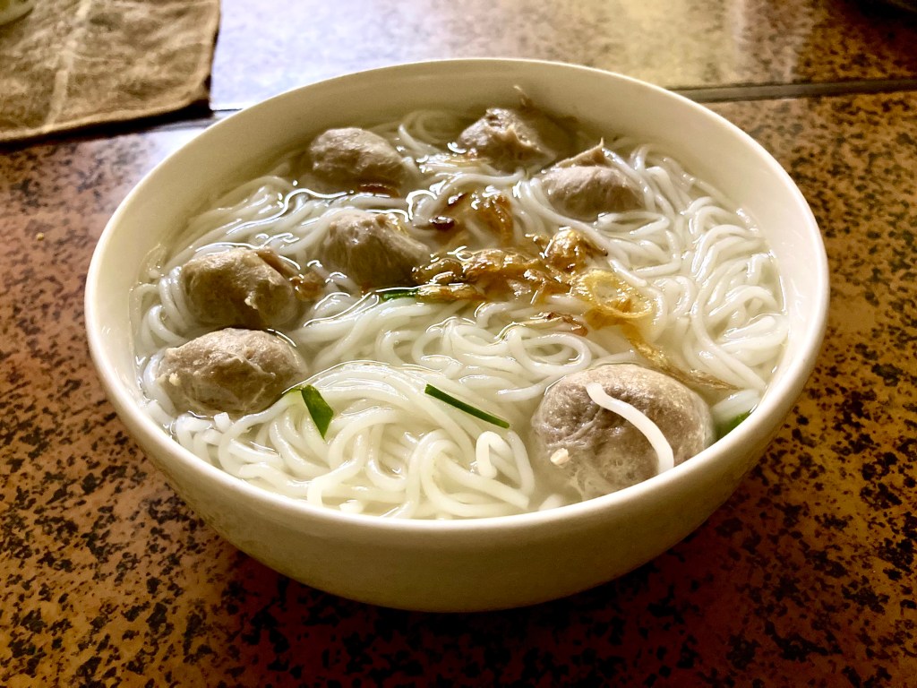 I love beef balls and in Vietnam, my family befriends with the beef balls vendor so I can have it as much as I want. Beef balls could be cooked in various ways, and one of them is this “Bun Bò Viên”. In this kind of soup, the broth is just a simple pork-based broth with seasoning to taste. Then, beef balls are added to the broth and bring it to boil. When serving, prepare a bowl with rice noodle, pour the hot broth into the bowl, garnish with fresh spring onions and fried shallot, then enjoy! Easy, isn’t it?