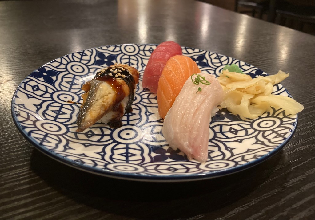 Middle: 01 piece each of tuna, salmon, yellowtail and eel from the Sushi menu;