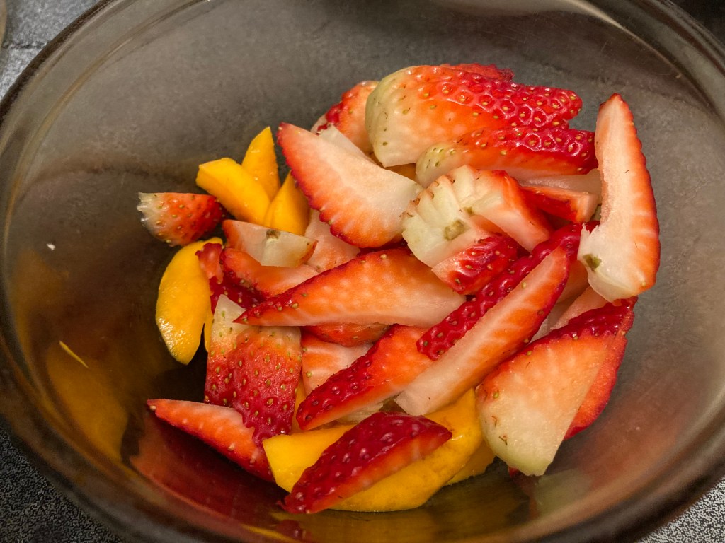 It’s time for dessert! He decided that he needed something to “cheer him up” for working full-time and being a full-time student. So he picked “Tiramisu”. Shout out to Vincenzo’s Plate with the classic, traditional tiramisu. Surprising to me that making tiramisu was very easy. And we added some fruit layers (strawberries and mangoes) alternately with the ladyfingers layers because the texture, the sweet & (slightly) sour taste of these fruits paired well with the tiramisu. I wish we could have some mango juice in hand for a more consistent taste. Nevertheless, our first try was still really good!